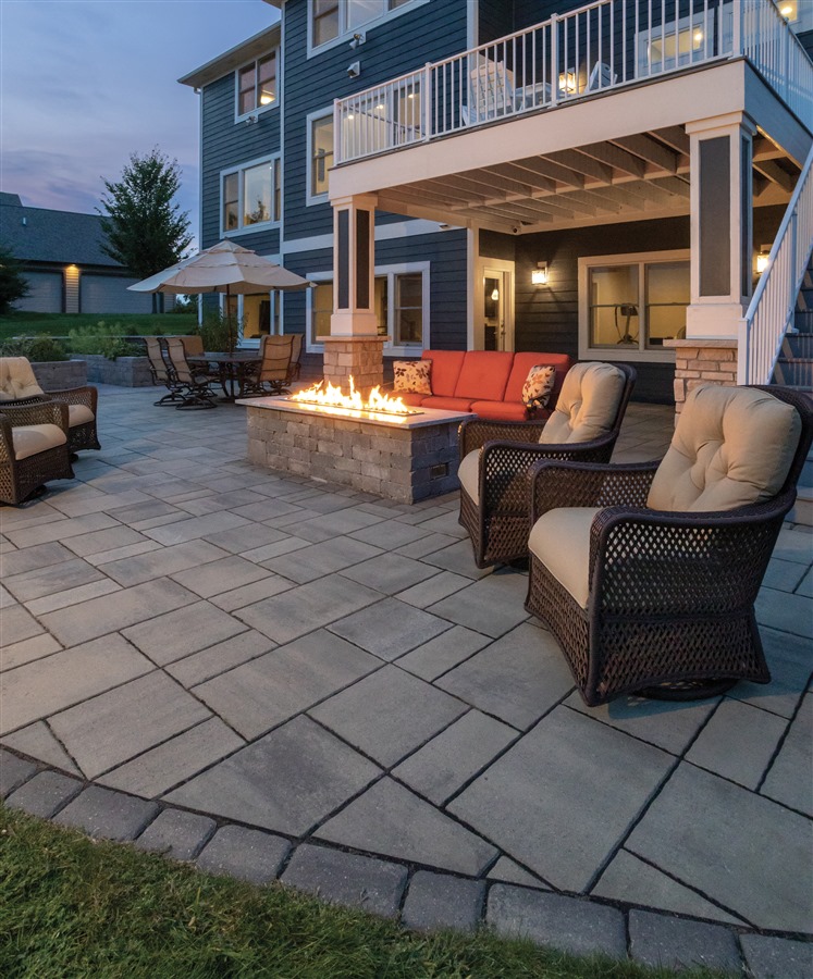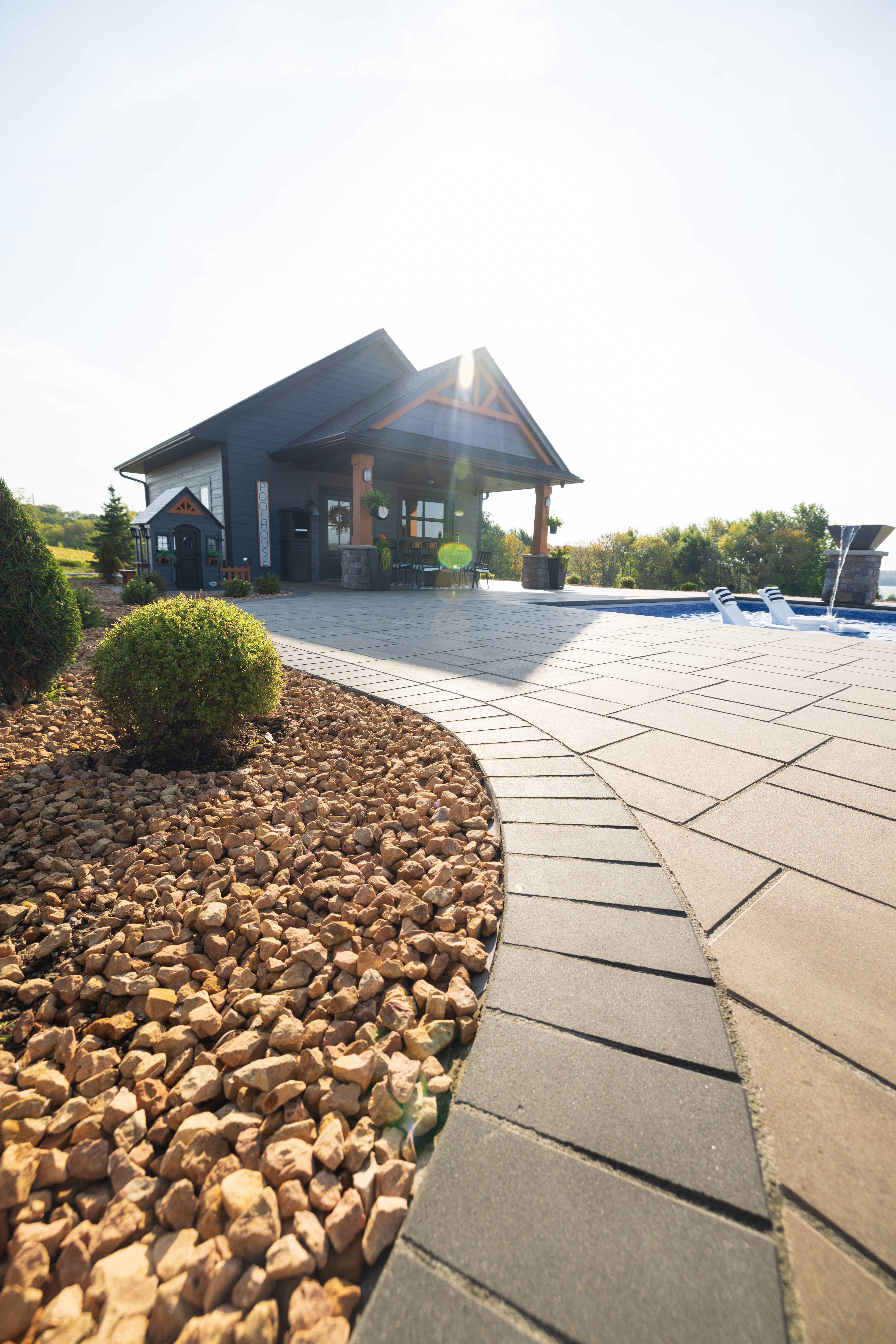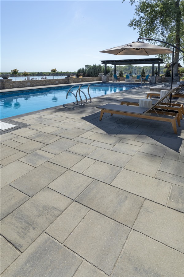 Barrington installs quickly and is ideal for patios and pool decks. Barrington is a three-piece, larger format paver featuring a smooth surface.
