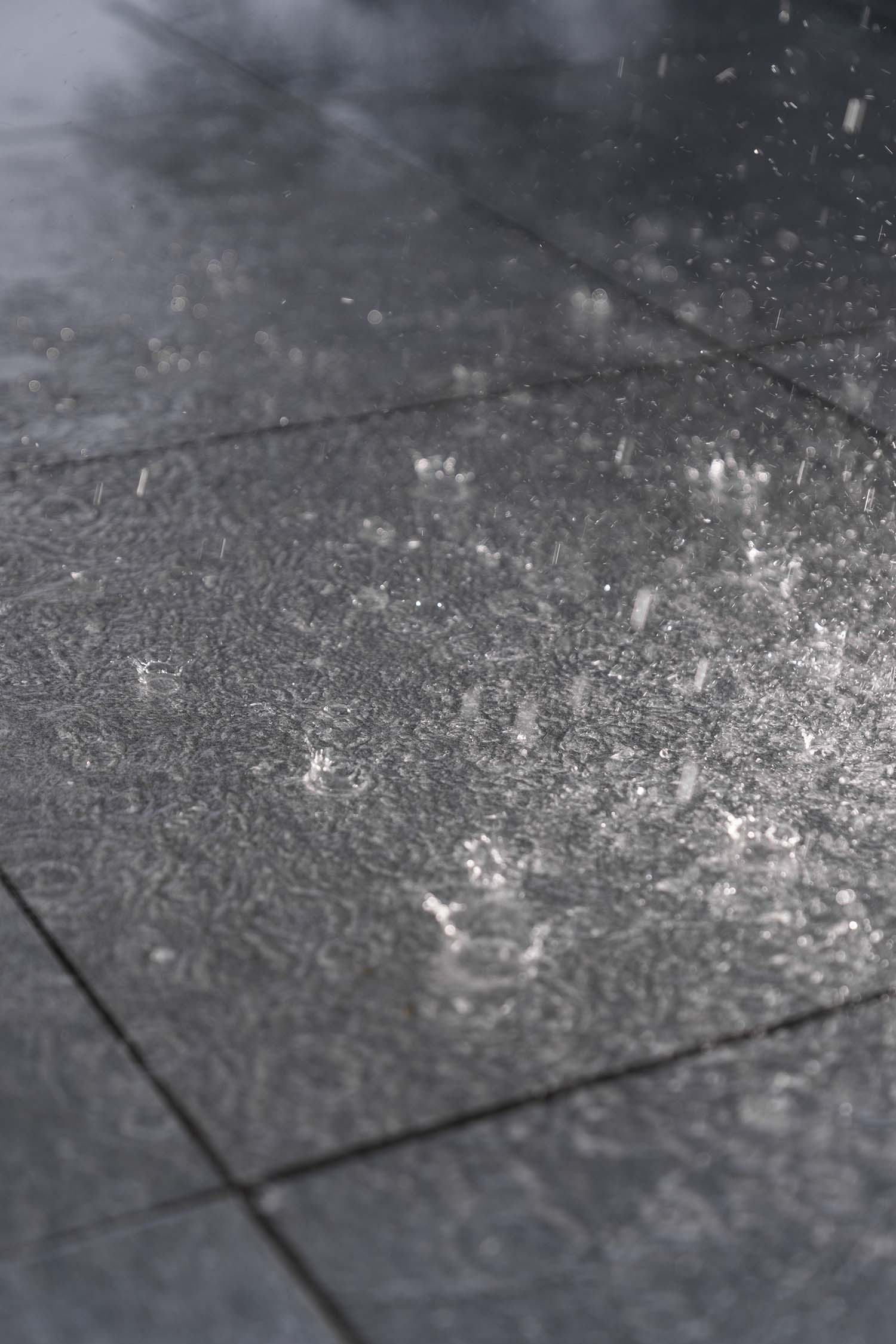 - Micro-beveled tile edges, grey concrete paver base