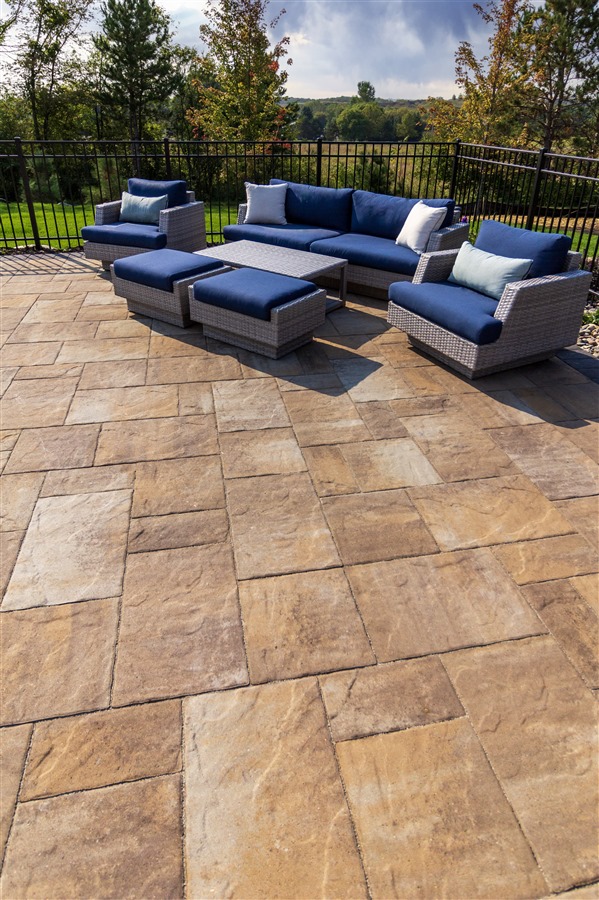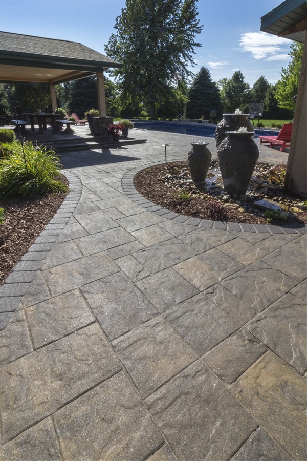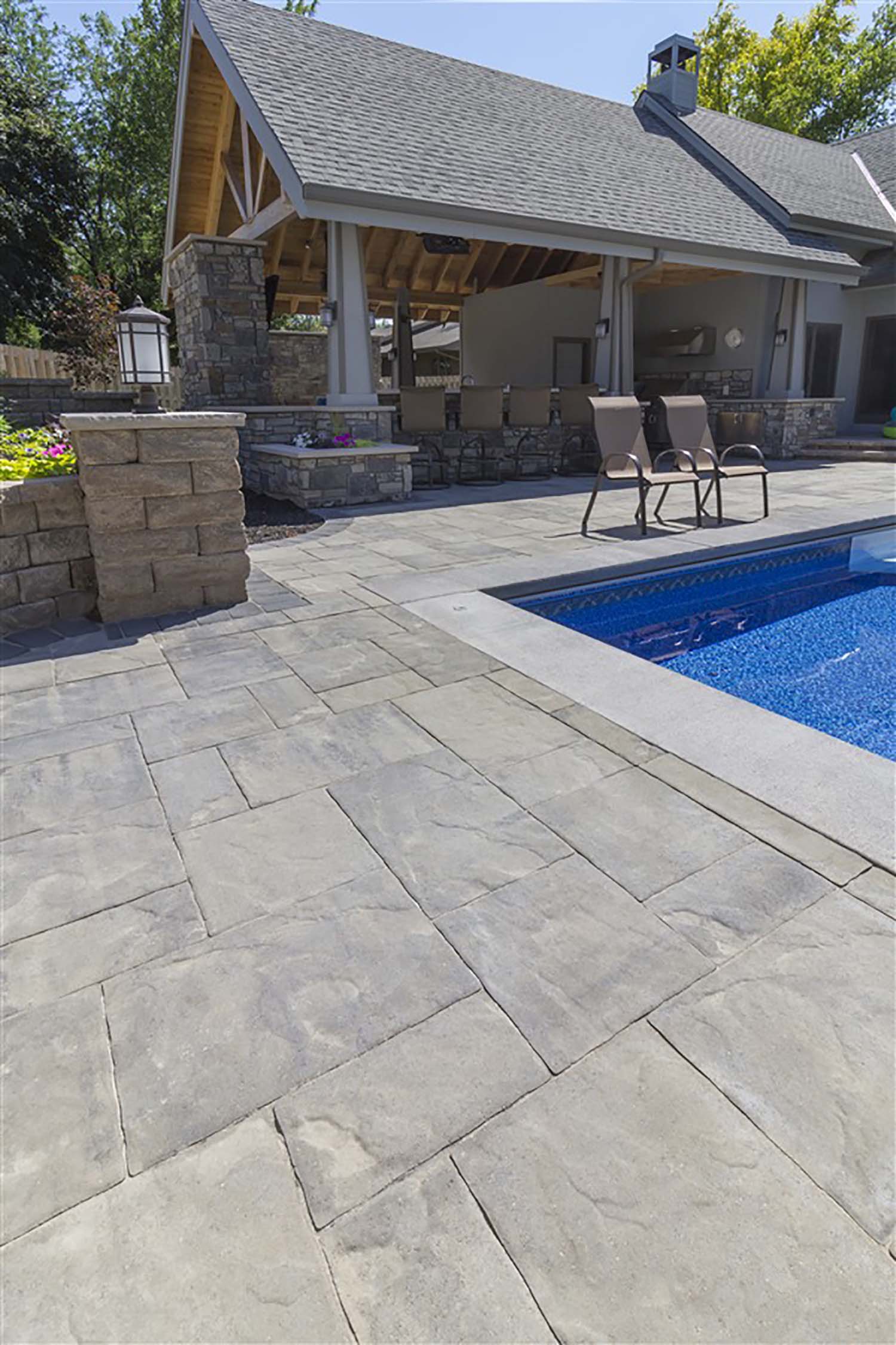 A three-piece, larger format paver featuring an embossed slate texture surface. Minnetonka installs quickly and is ideal for patios and pool decks.